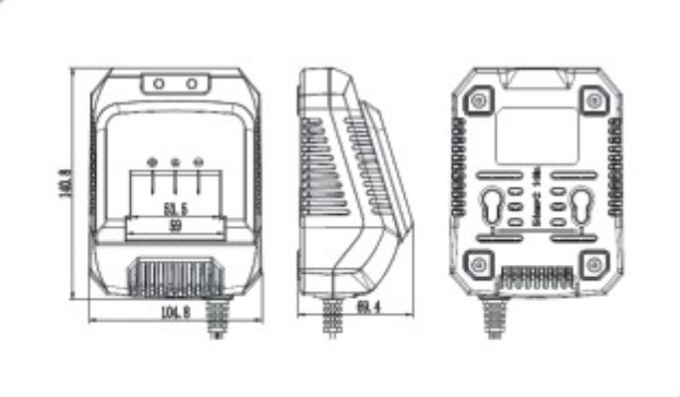 输入 input: 100-240V AC 50-60Hz 输出电流 charge current : 12.6-13.5VDC 1500MA Max 输出功率: 20W Max