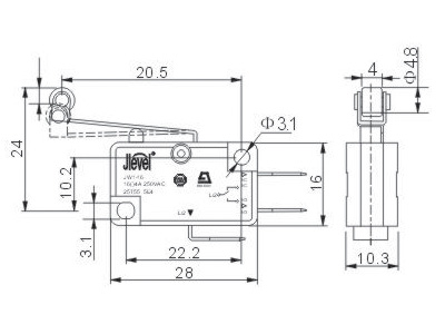 产品描述Description >>焊接、快插共用端子Solder and insert terminal (4.8×0.6) >>快插端子Insert terminal (6.3×0.6) >>NC/NO转换功能conterting function >>常闭触头contactor(NC) >>常开触头contactor(NO) >>可配套驱动压杆Deriving level can be maed(H) >>可配套操作按钮Operating push-button can be mated(A)