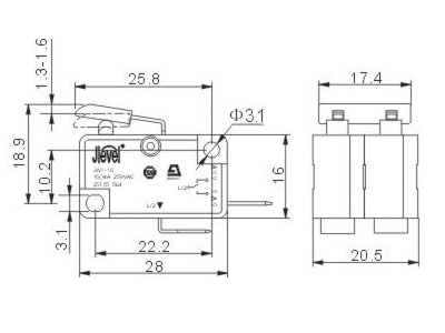 产品描述Description >>焊接、快插共用端子Solder and insert terminal (4.8×0.6) >>快插端子Insert terminal (6.3×0.6) >>NC/NO转换功能conterting function >>常闭触头contactor(NC) >>常开触头contactor(NO) >>可配套驱动压杆Deriving level can be maed(H) >>可配套操作按钮Operating push-button can be mated(A)