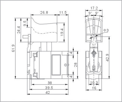 Product description >>Reversing switch (K) >>Emergent stop equipment(B) >>Middle-locking device >>Electronic speed control(E),High speed mechanical breakover >>External FET >>DC double speed(2S) >>DC single speed(S)